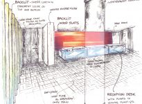 For Renzo Rosso, the owner of denim brand Diesel, I conceptualized and designed a 55 room, 4-star boutique hotel on Ocean Drive, Miami Beach, Florida. The main concept of this project was to create a large ‘Villa’ rather then a standard hotel – a technically innovative environment with a provocative, charming atmosphere.